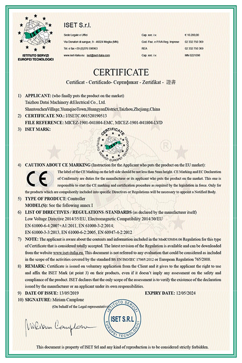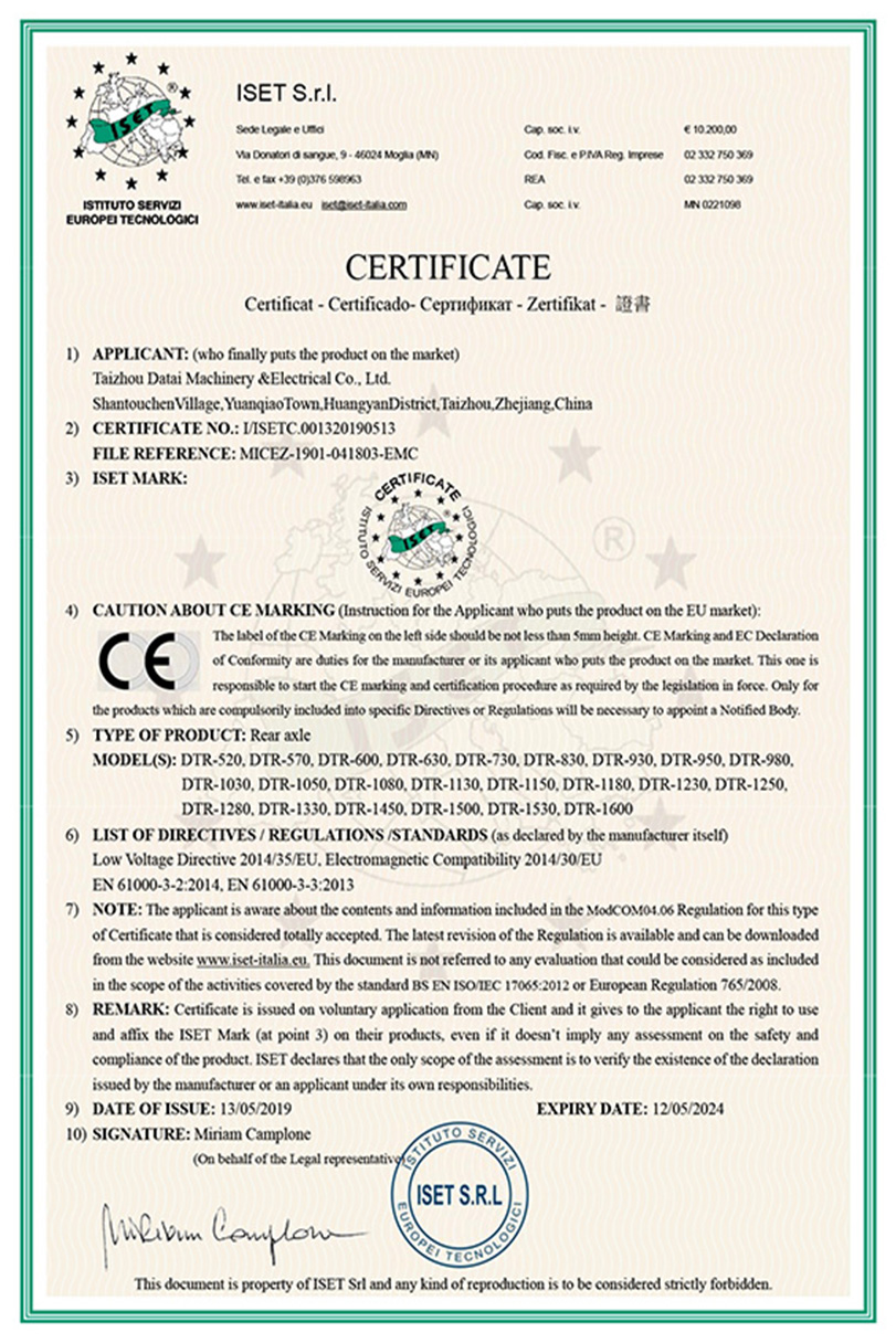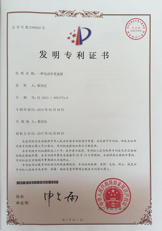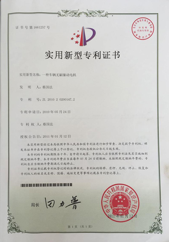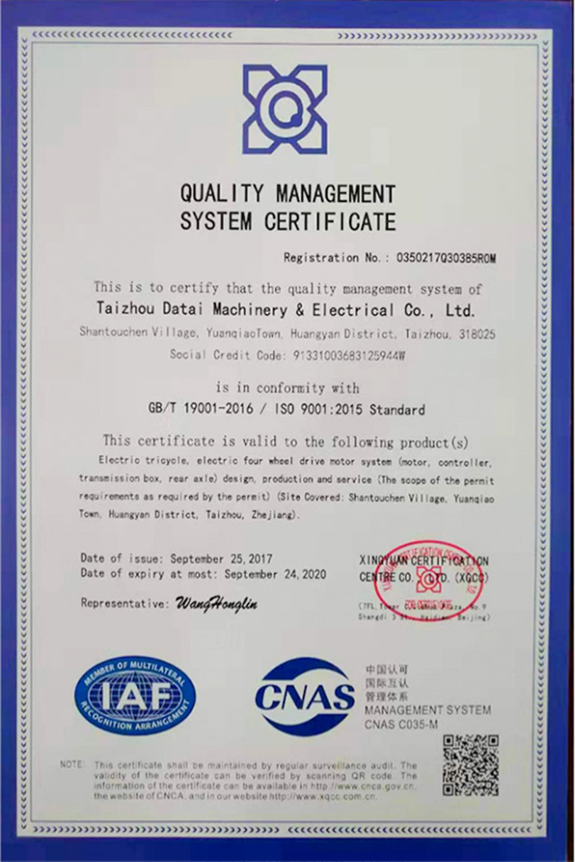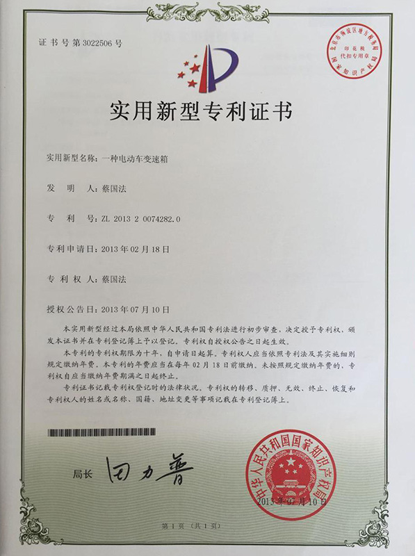 公司本着科技创新 质量为上的宗旨,以产品的设计研发为中心,拥有雄厚的技术开发团队。经过十多年的努力,从最早的直流无数永磁电机和控制器到不变档连体后桥驱动总成,再到两档变速后桥驱动总成,到现在的六相永磁同步电机(模块化)控制系统总成,国内大功率电动三轮车的3个发展阶段,见证了大泰电动力系统研发和技术创新给行业带来的重大改变。公司先后获得台州市首批瞪羚企业,黄岩区百强企业,安全生产标准化,发明专利4项,国家实用新型专利9项,外观专利4项等各项荣誉,公司产品一直深受国内外电动三轮车生产企业和终端消费者好评,大泰已成长为大功率电动车行业的标杆。