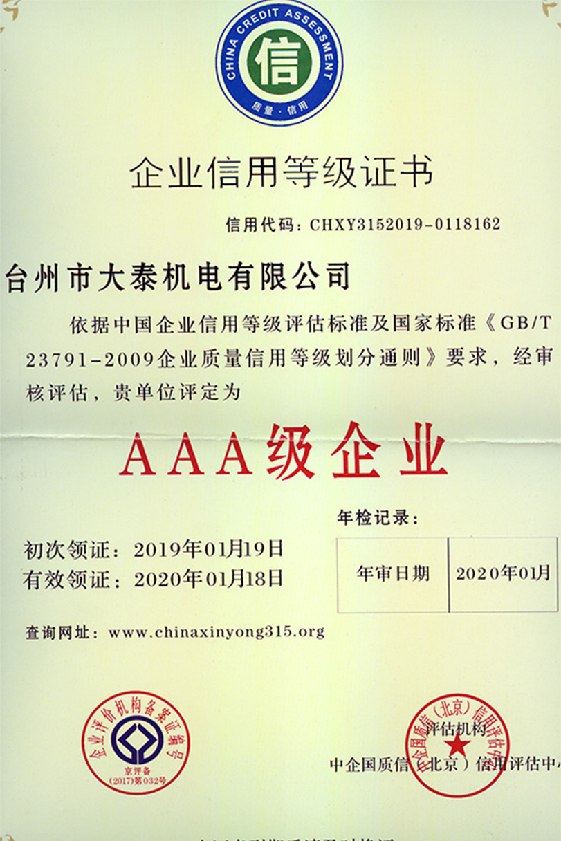 荣获“质量达标,用户放心AAA级企业”。