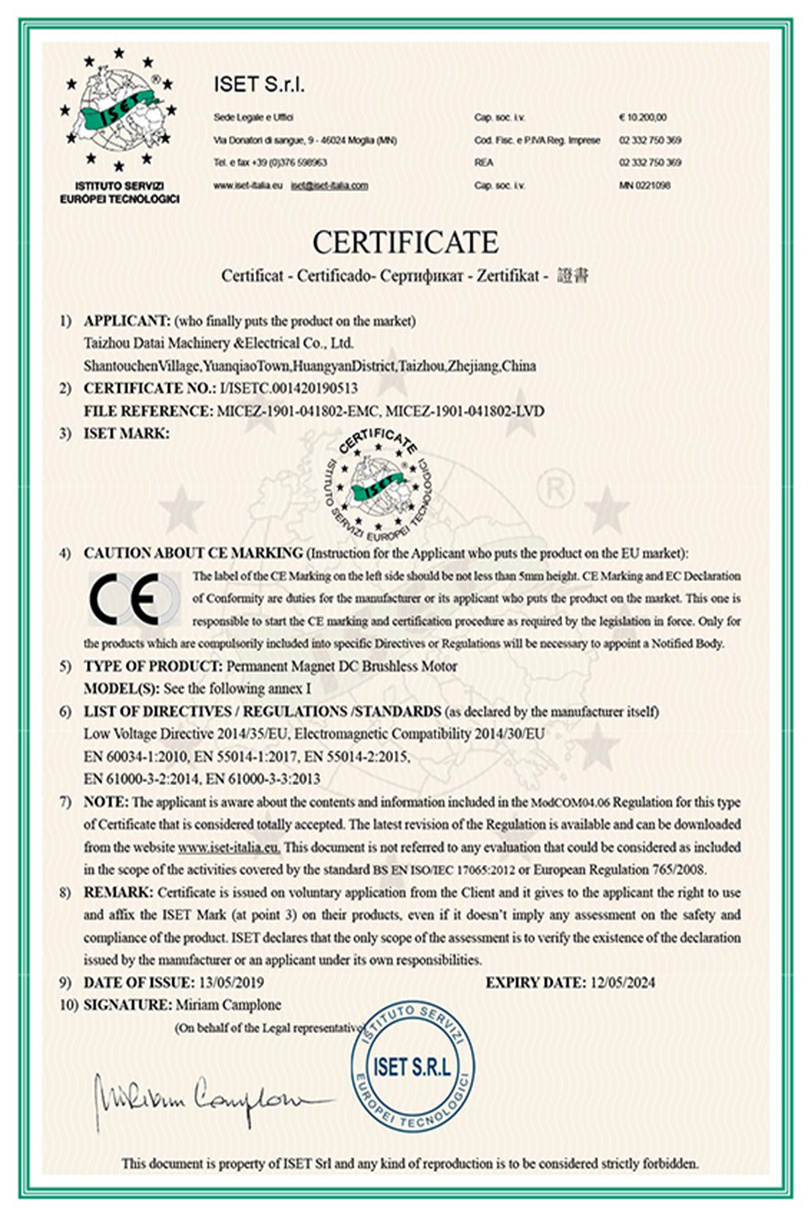 台州市大泰机电有限公司成立。首款无刷直流永磁电机面世。